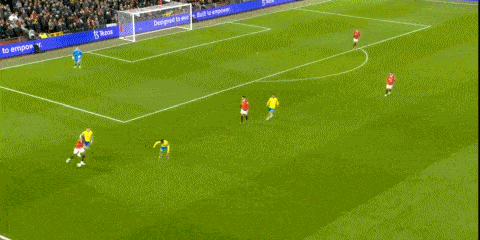 由于这场比赛的效率基本盖棺定论,是以开场的强度并不大。 借此契机,滕哈赫也作念出了一些交替,比如在左路,加纳乔今天获取了首发的契机。在原有的体系内,最近气象大热的拉什福德开场就会眩惑敌手的要点留神,从而为右路掀开空间,比及右路打出几次遑急,眩惑了留神之后,拉什福德便会在左路尝试更多的径直遑急,规律类推下去。 这是曼联在阵脚战遑急中的基本法子章程。 可是在今天,天然右路在开局阶段也打出了协作: